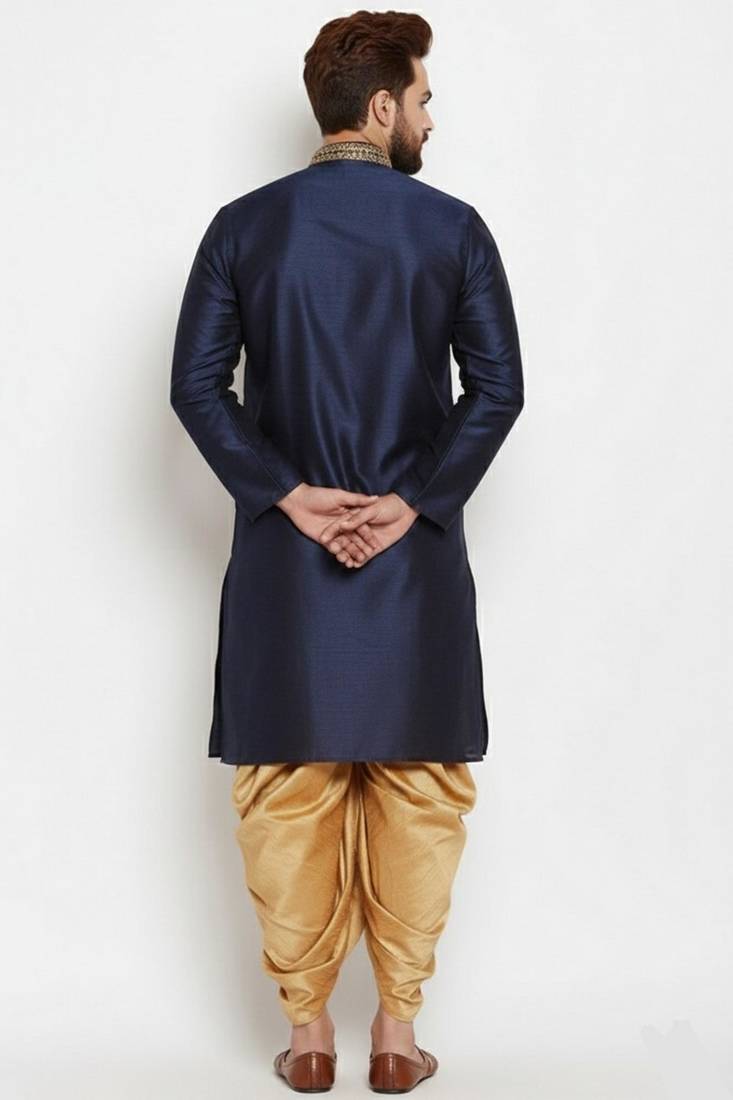 | Product Description | Navy Embroidered Dupion Art Silk Kurta Set |