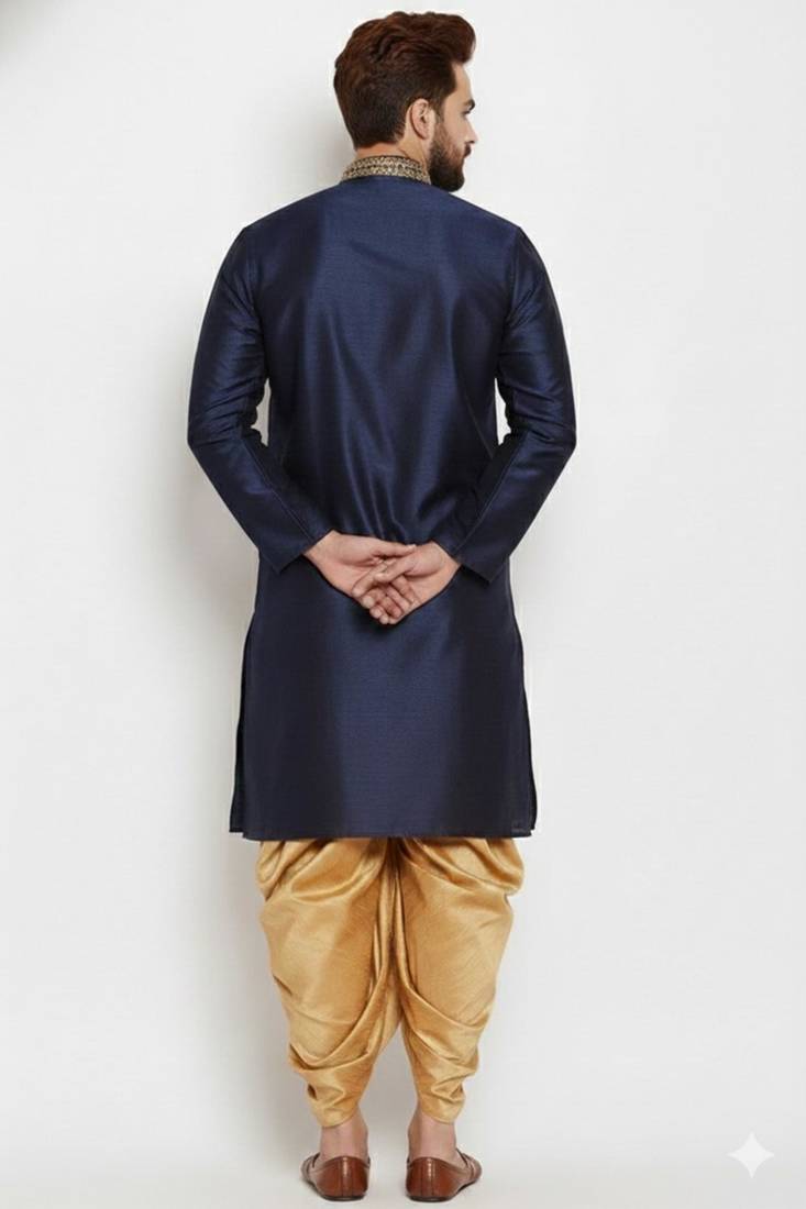 | Product Description | Navy Embroidered Dupion Art Silk Kurta Set |