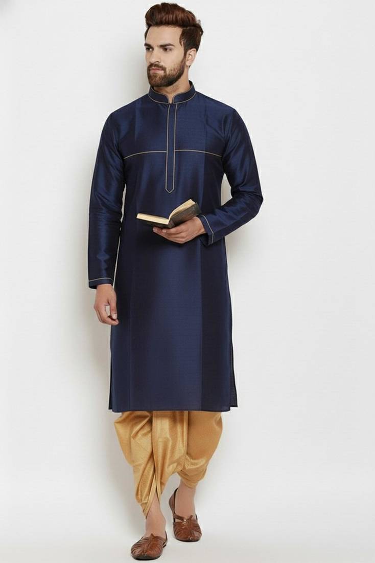 | Product Description | Navy Embroidered Dupion Art Silk Kurta Set |