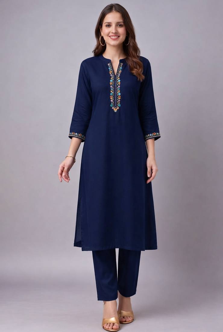 | Product Name | Navy Embroidered Rayon Kurta Set | |