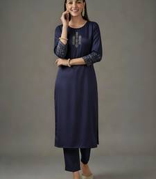 Navy embroidered rayon kurta set stitched
