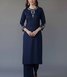 Navy embroidered rayon kurta set stitched