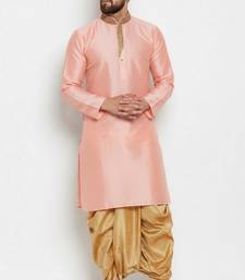Peach embroidered dupion art silk kurta set