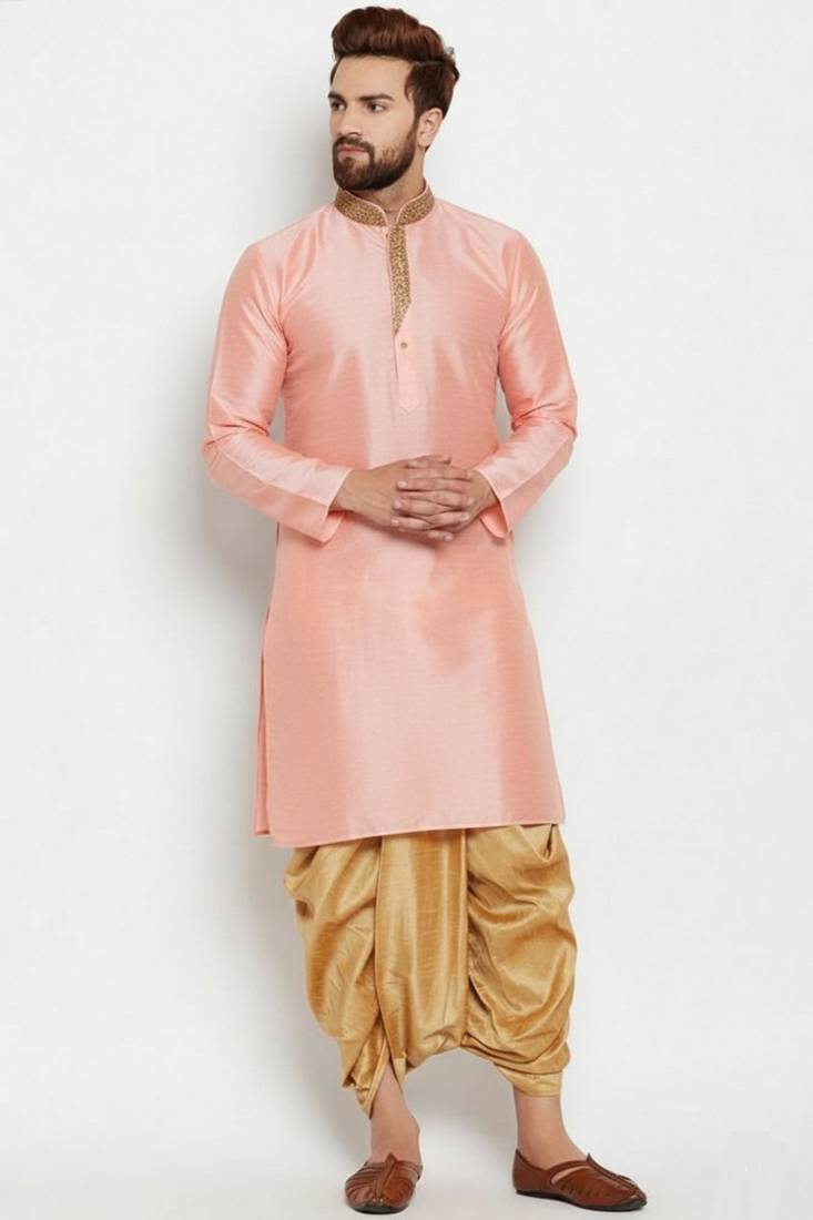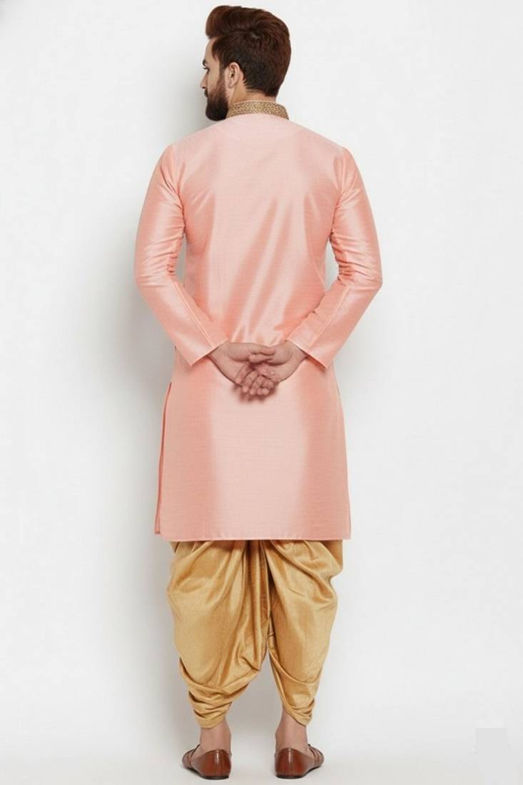 | Product Description | Peach Embroidered Dupion Art Silk Kurta Set |
