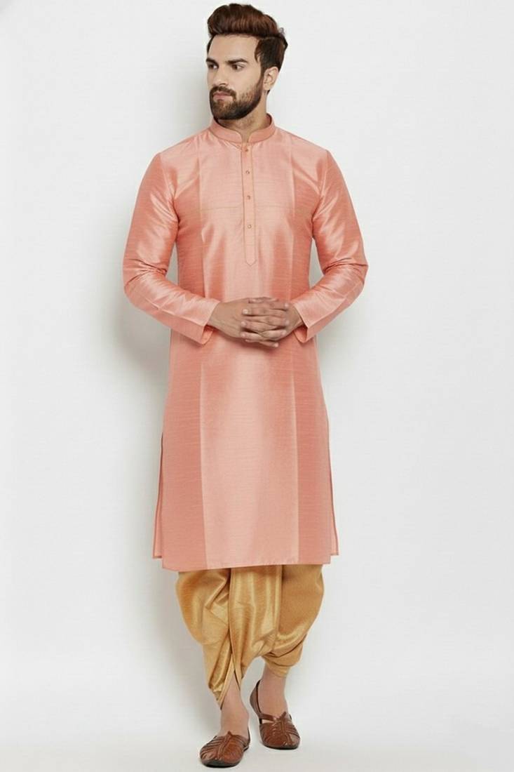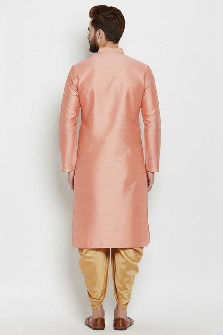 | Product Description | Peach Embroidered Dupion Art Silk Kurta Set |