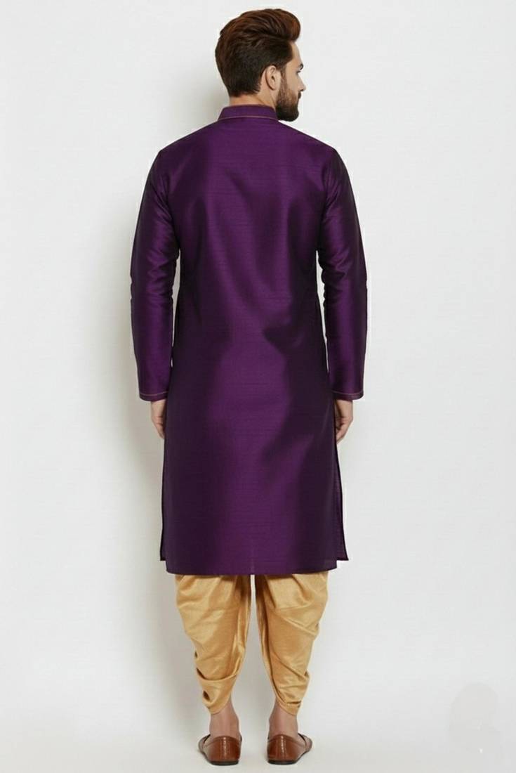 Purple embroidered dupion art silk kurta set