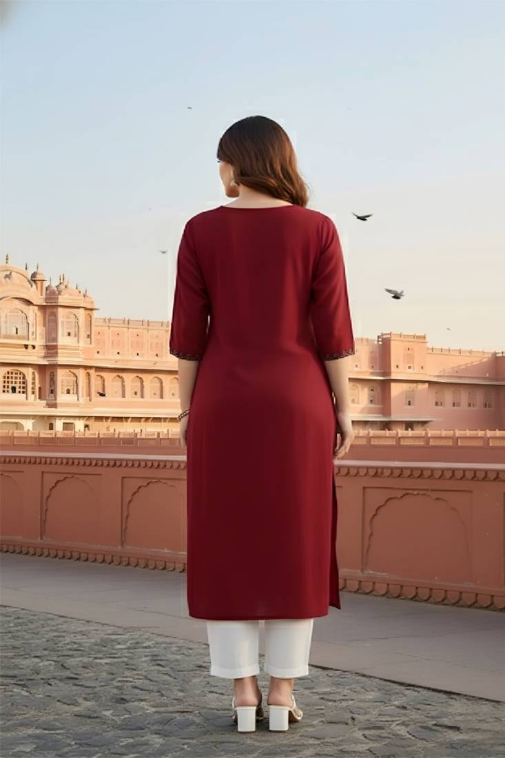| Product Name | Red Embroidered Rayon Kurta Set | |