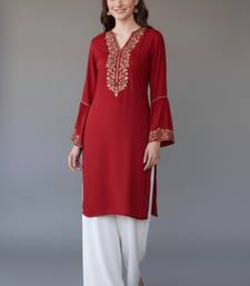 Red embroidered rayon kurta set stitched