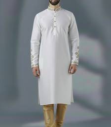 White dupion silk embroidered kurta set
