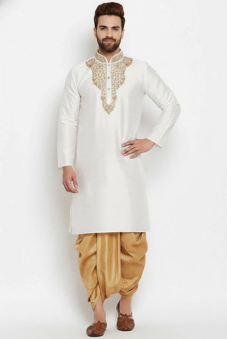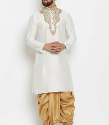 | Product Description | White Embroidered Dupion Art Silk Kurta Set |