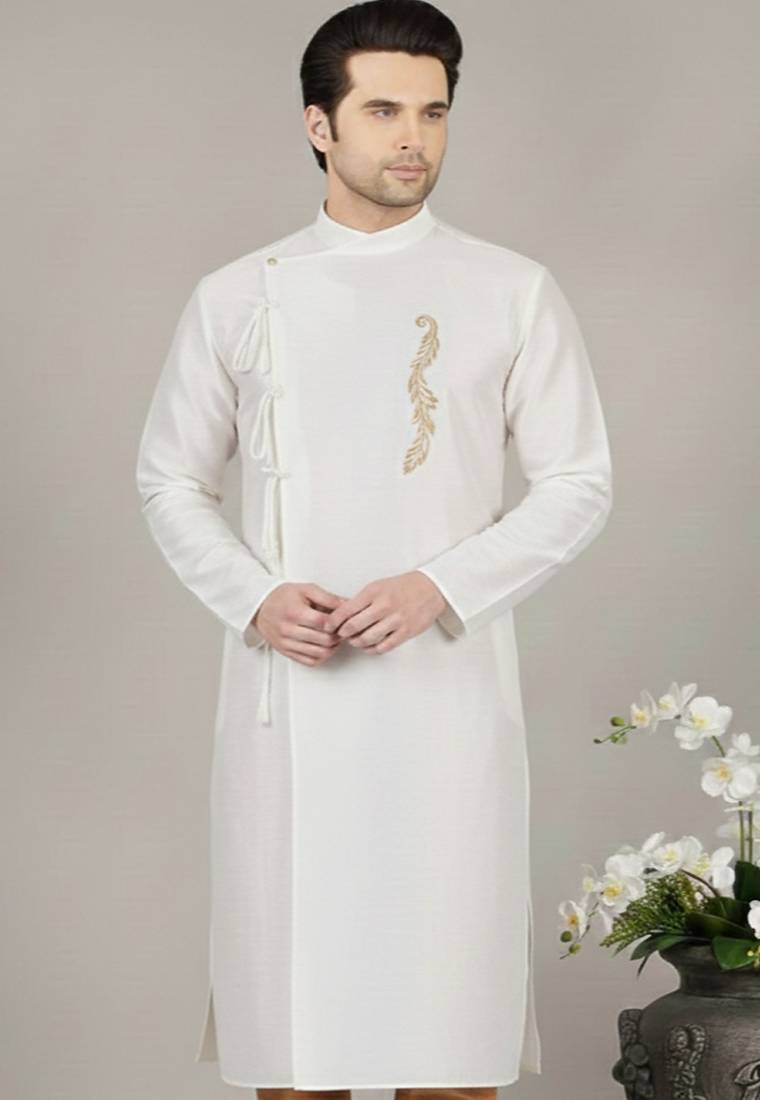 | Product Name | White Embroidered Dupion Silk Kurta | |