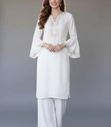 White embroidered rayon kurta set stitched