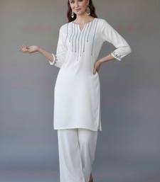 White embroidered rayon kurta set stitched