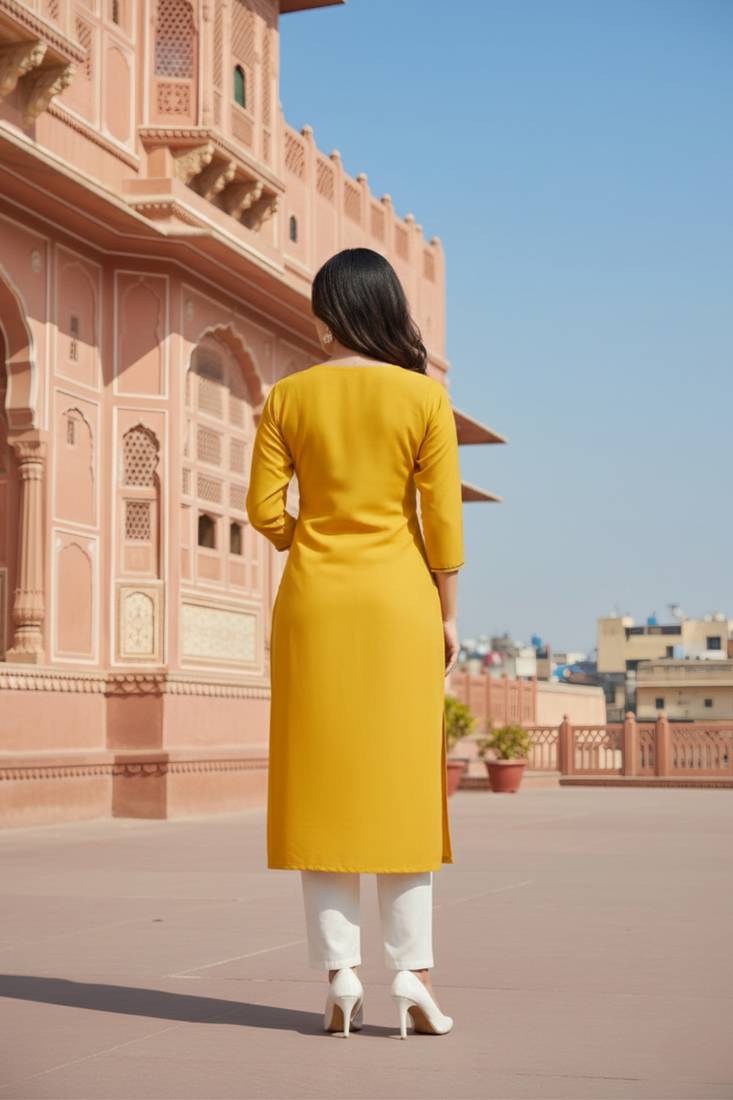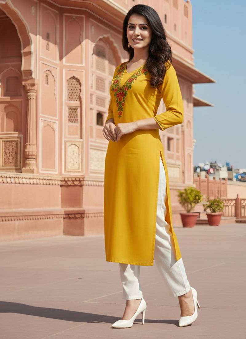 | Product Name | Yellow Embroidered Rayon Kurta Set | |