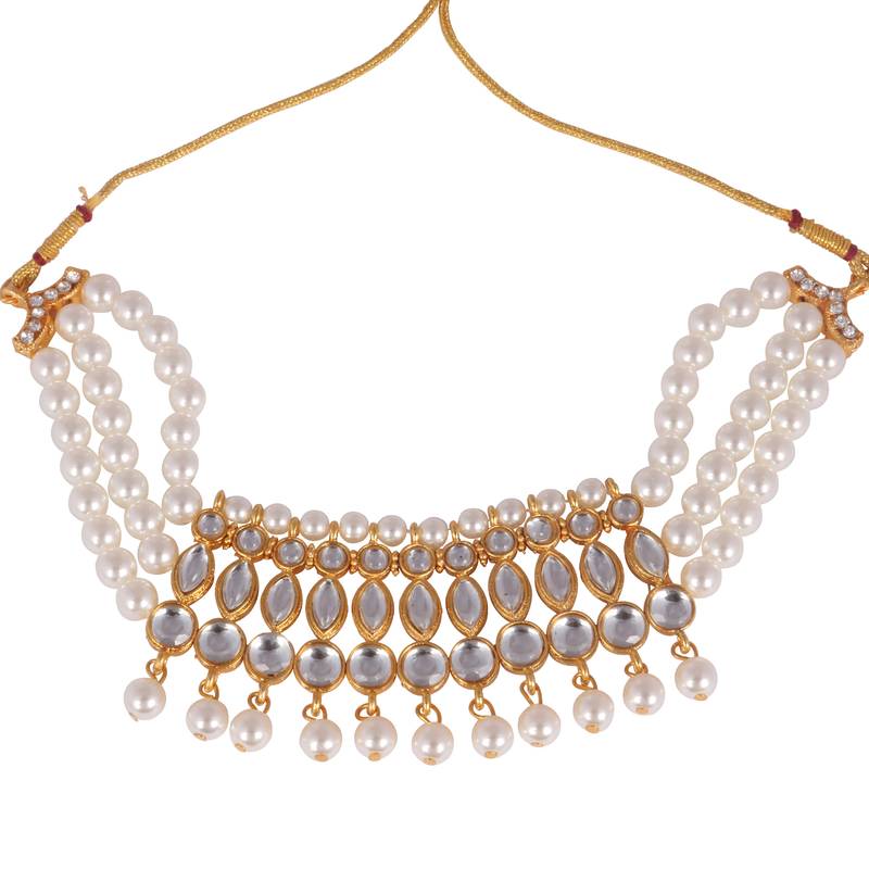 | Product Description | Steorra Jewels Traditional Partywear White Pearl Kundan Choker Necklace Set For Women And Girls |