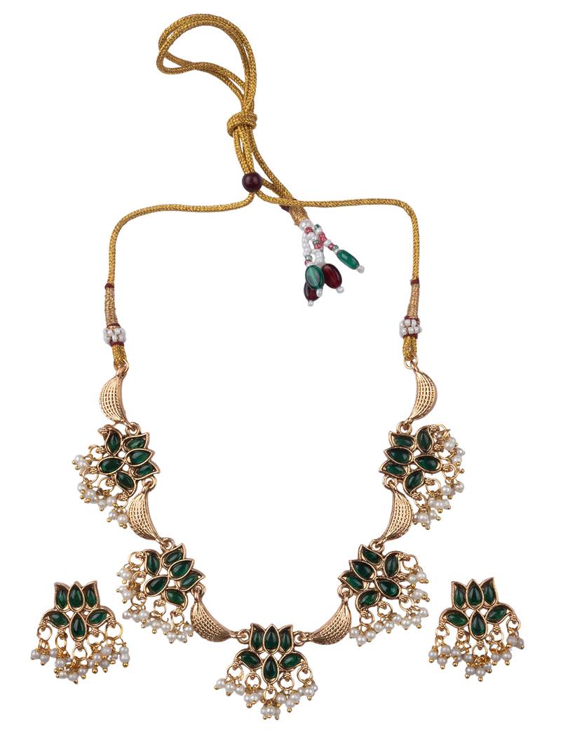 | Speciality | Gold Plated Green Bloom Necklace Set | |