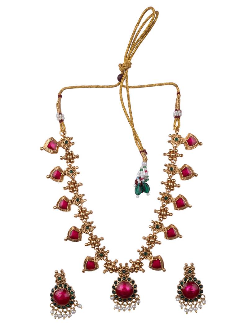 | Speciality | Gold Plated Pink Floral Jewellery Set | |