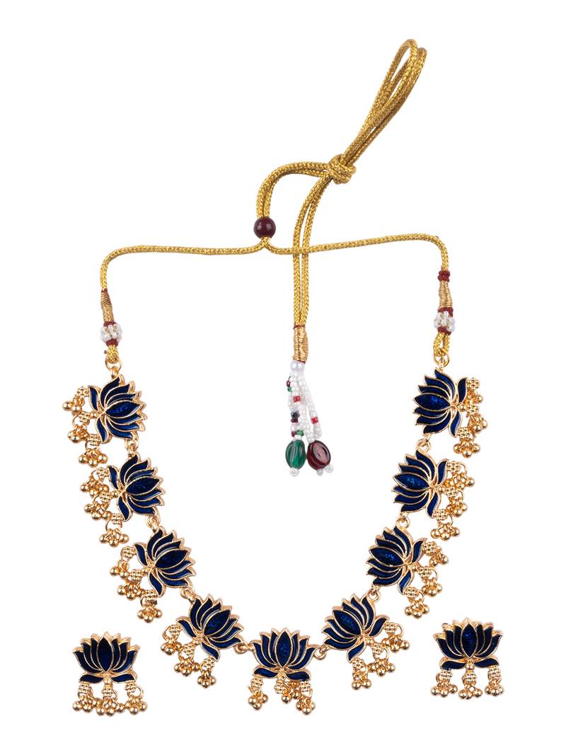 | Product Name | Handpainted Blue Lotus Meenakari Necklace Set | |