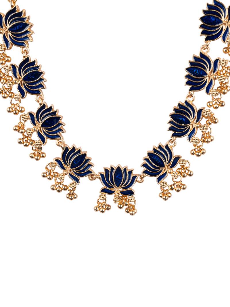 Handpainted blue lotus meenakari necklace set
