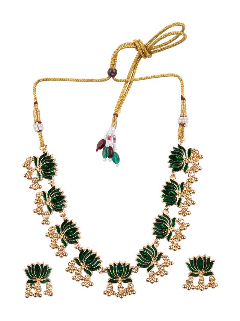 | Product Name | Handpainted Green Lotus Meenakari Necklace Set | |