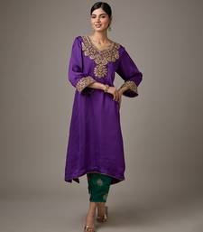 Purple embroidered satin kurta set