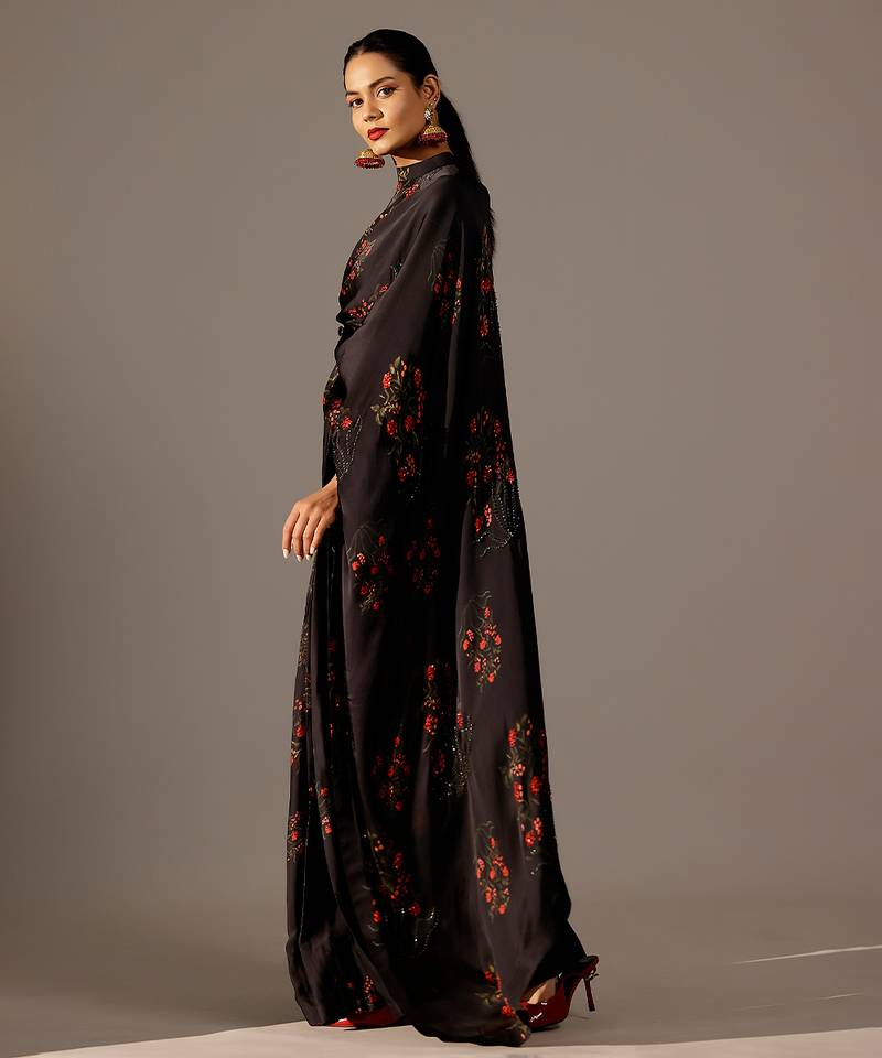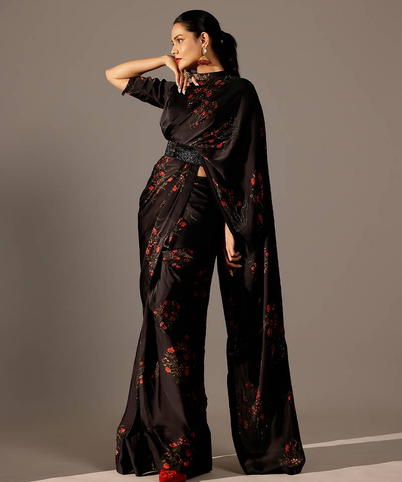 Black printed georgette saree
