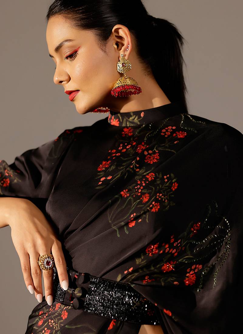 | Product Description | This Black Printed Georgette Saree Exudes Elegant Charm With Its Fluid Drape And Lightweight, Airy Feel. The Artistic Prints Add A Modern Yet Graceful Touch, Creating A Refined Festive Appeal. Perfect For Parties, Celebrations, And Evening Gatherings, It Blends Effortless Sophistication With Timeless Style For A Stunning Ethnic Look.