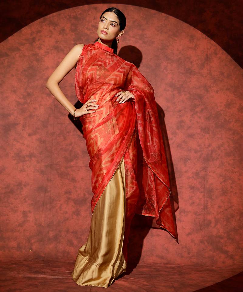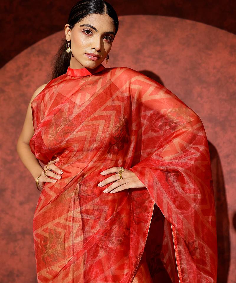 | Product Description | This Red Printed Georgette Saree Exudes Elegant Charm With Its Fluid Drape And Lightweight, Airy Feel. The Artistic Prints Add A Modern Yet Graceful Touch, Creating A Refined Festive Appeal. Perfect For Parties, Celebrations, And Evening Gatherings, It Blends Effortless Sophistication With Timeless Style For A Stunning Ethnic Look.