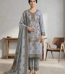 Stylee lifestyle grey linen digital printed dress material unstitched