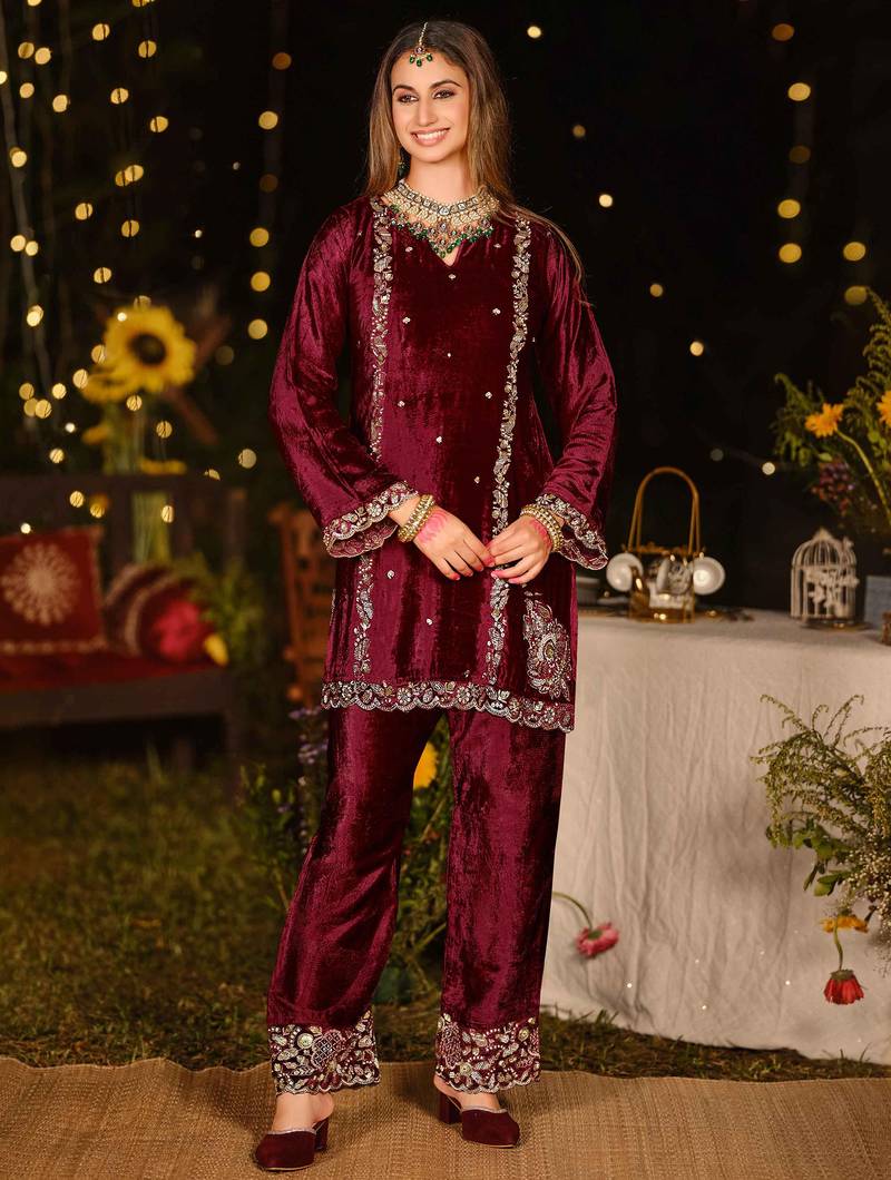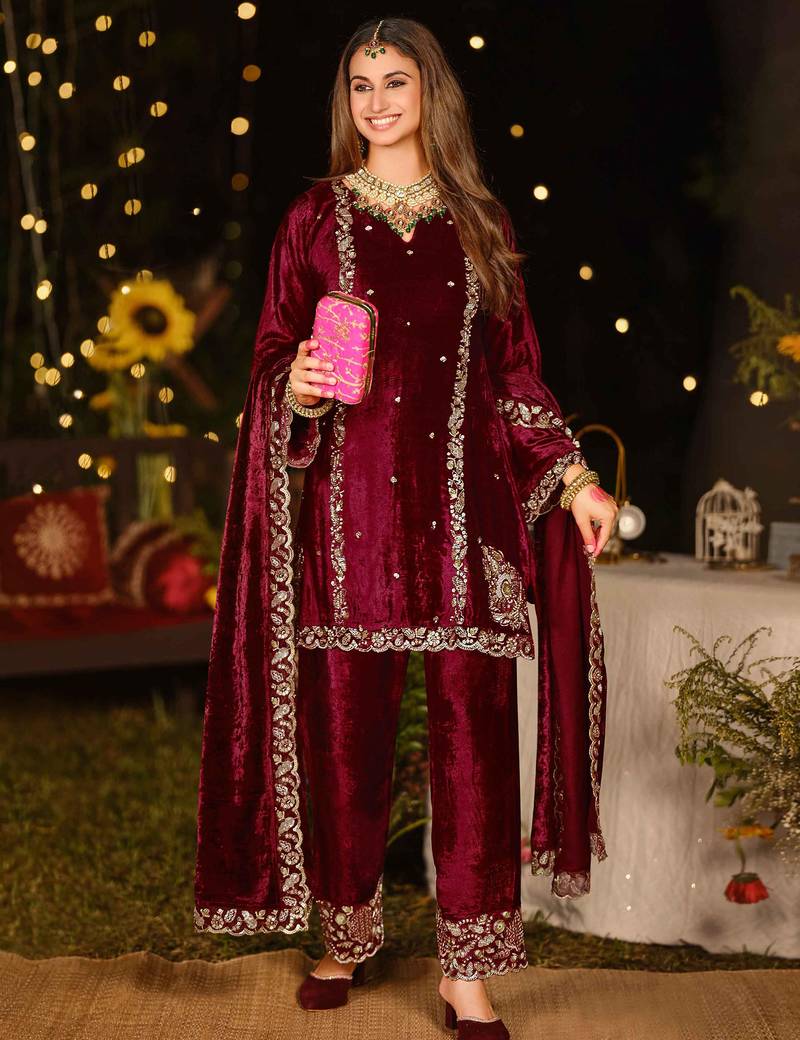 | Product Name | Stylee Lifestyle Maroon Velvet Embroidered Dress Material | |
