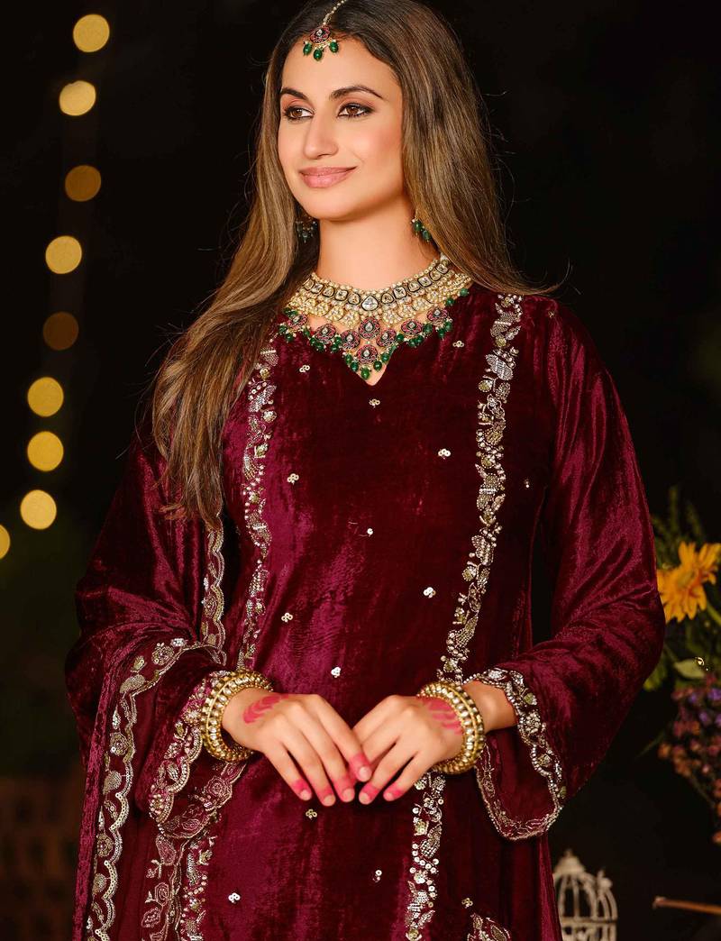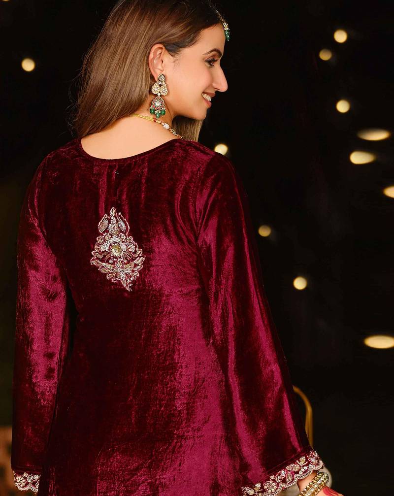 | • | Kameez | : | Color- Maroon / Fabric- Velvet |