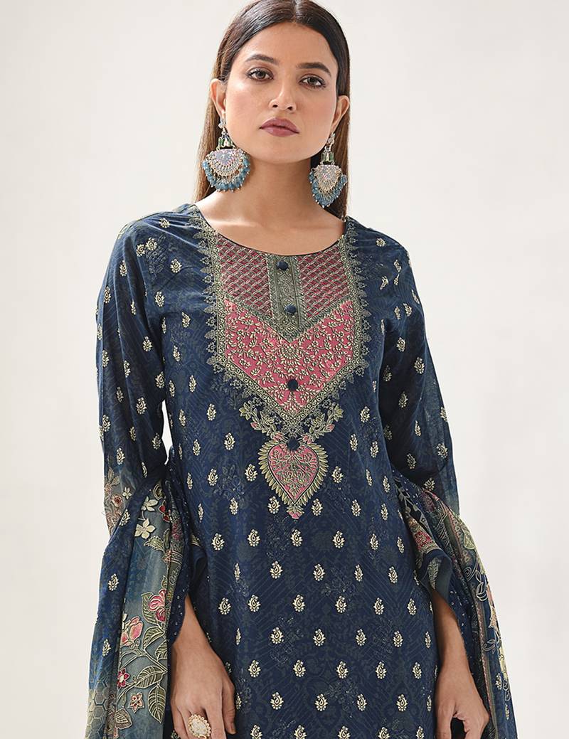 | Product Name | Navy Blue Lawn Cotton Digital Printed Dress Material | |