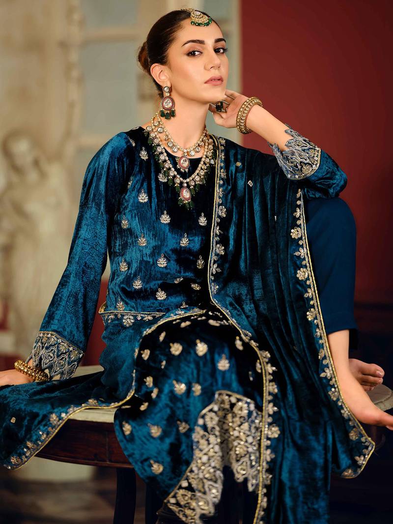 | Product Name | Stylee Lifestyle Navy Blue Velvet Embroidered Dress Material | |