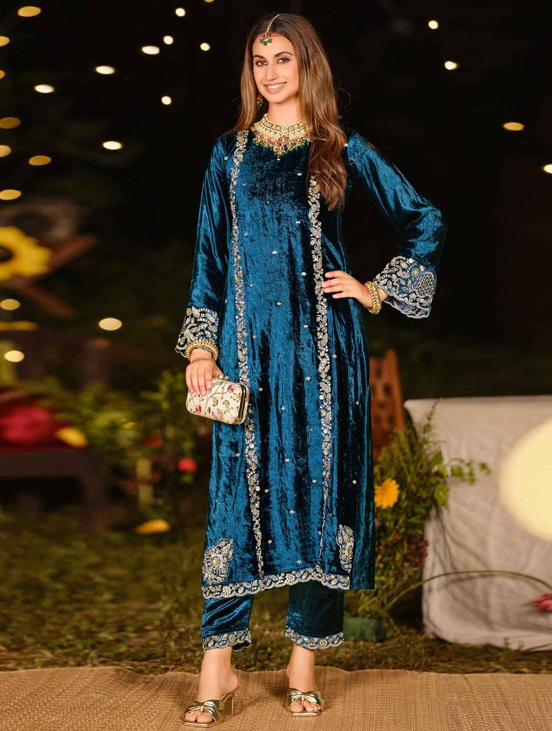 | Product Name | Stylee Lifestyle Navy Blue Velvet Embroidered Dress Material | |