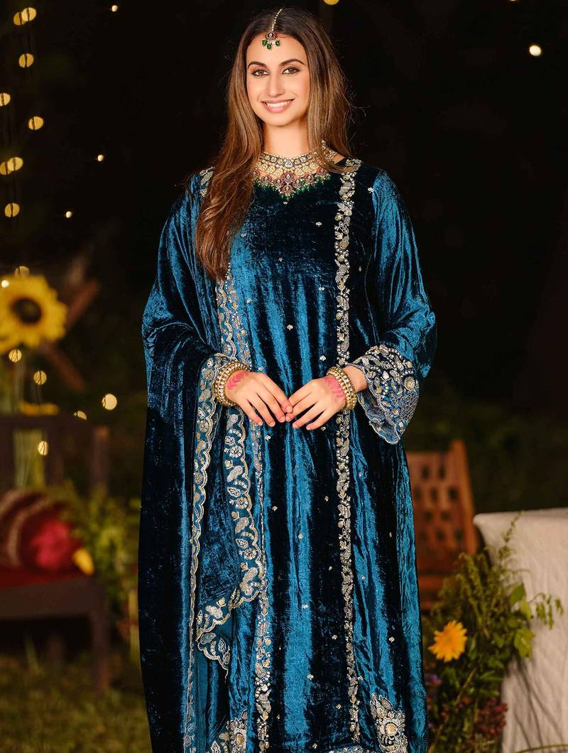 | • | Kameez | : | Color- Navy Blue / Fabric- Velvet |