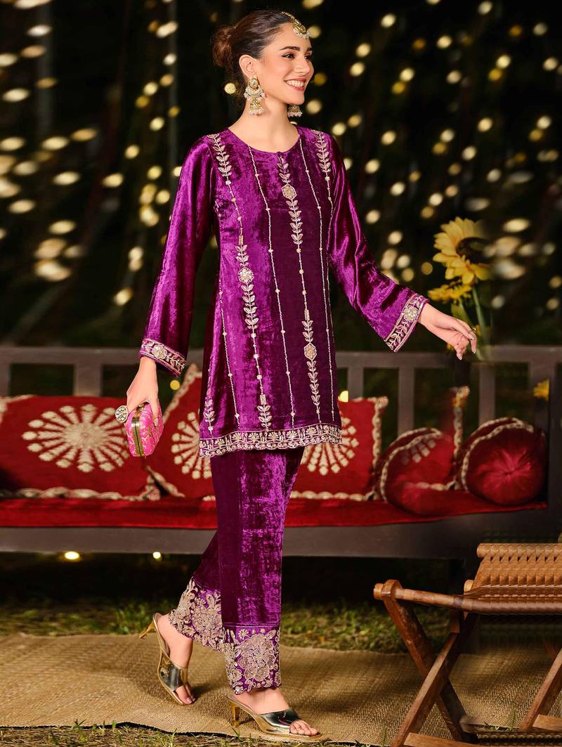 | Product Name | Stylee Lifestyle Purple Velvet Embroidered Dress Material | |