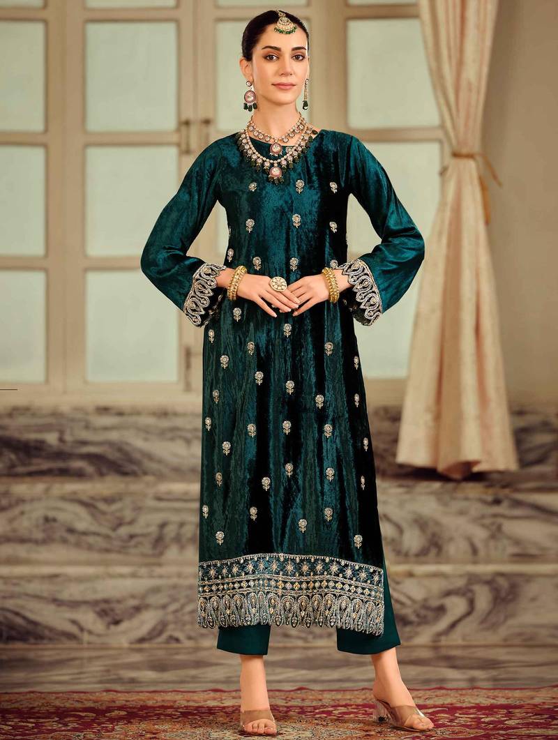 | Product Name | Stylee Lifestyle Teal Velvet Embroidered Dress Material | |