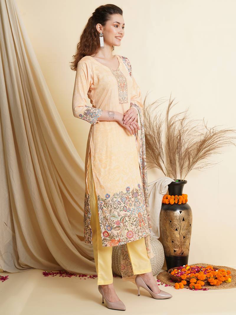 | Product Description | Allover Contrast Floral Digital Print With Golden Foil Print & Digital Printed Dupatta |