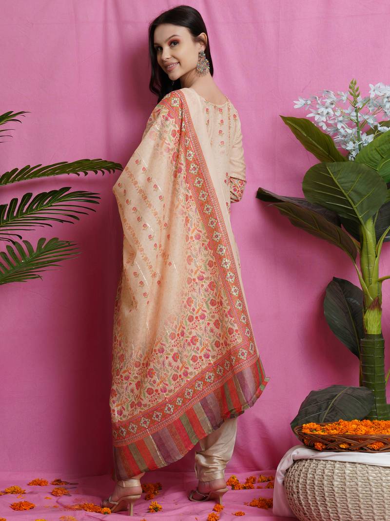 | Product Description | Allover Contrast Floral Digital Print With Resham Work & Digital Printed Dupatta |