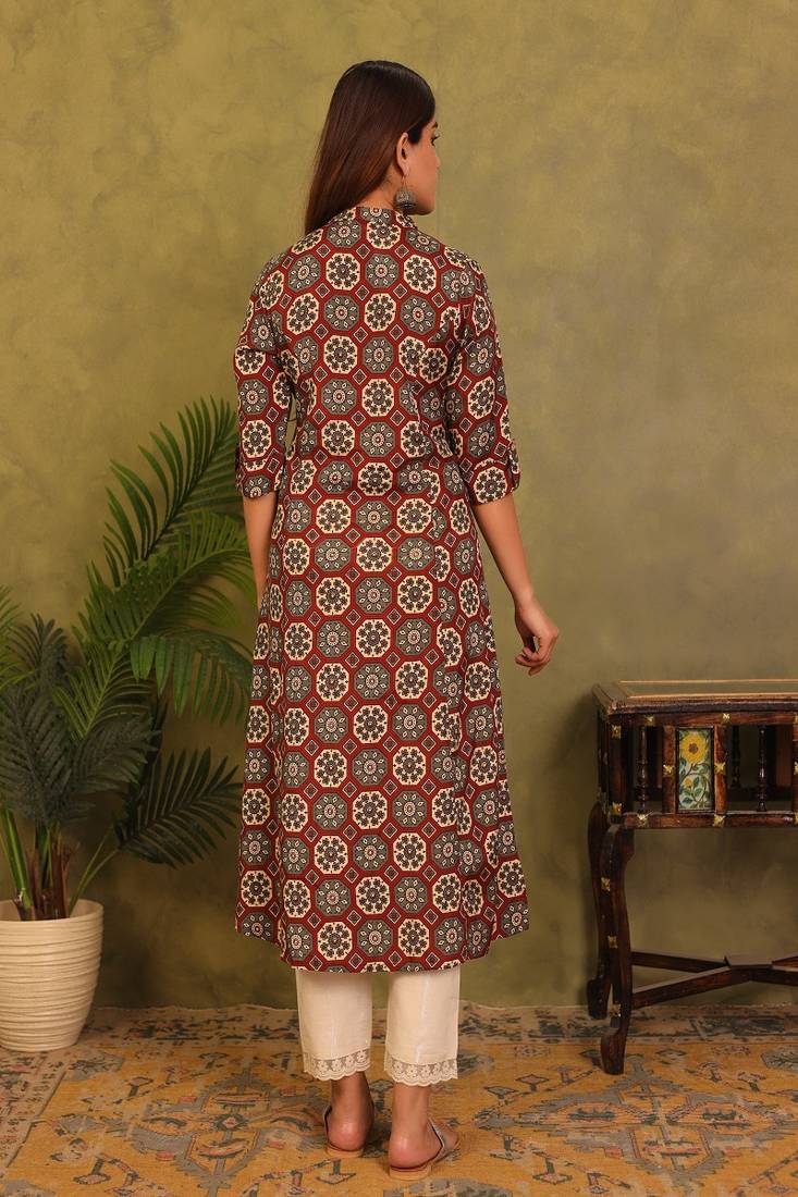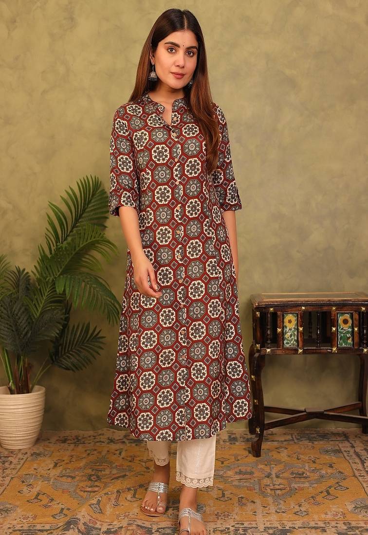 Product Name Styllow Women Printed Viscose Rayon A Line Kurta (Rust)