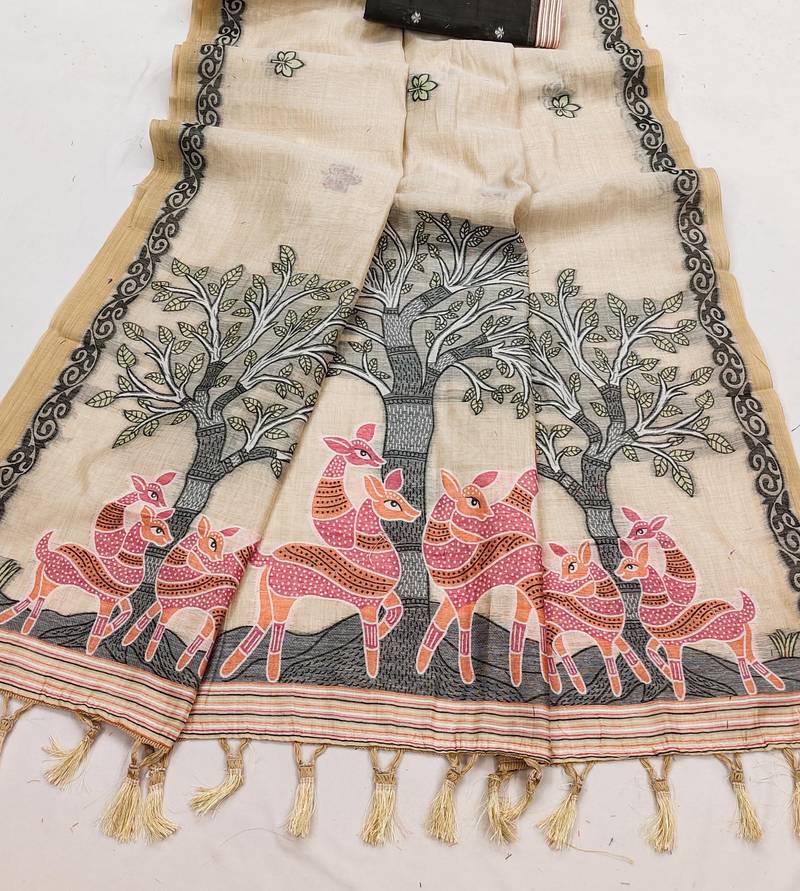 | Product Name | Beige Designer Soft Cotton Sarees With Tassels | |
