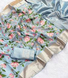 Blue color floral tissue saree