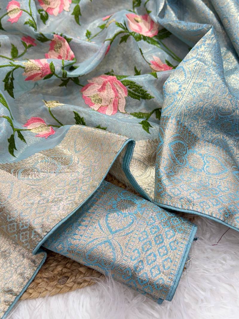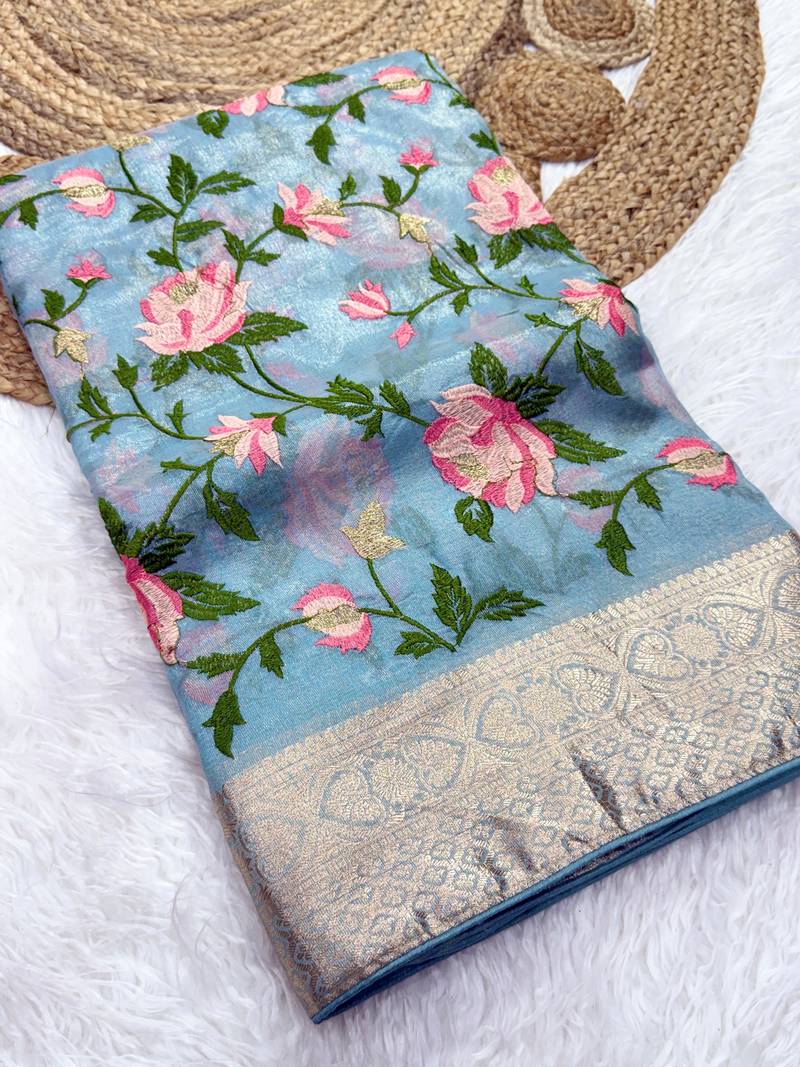 | Product Name | Blue Color Floral Tissue Saree | |