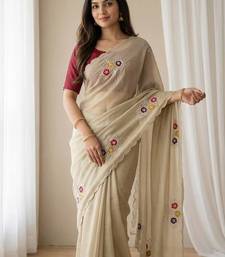 Cream color handwork khatali butta with cutdana sequence work silk saree