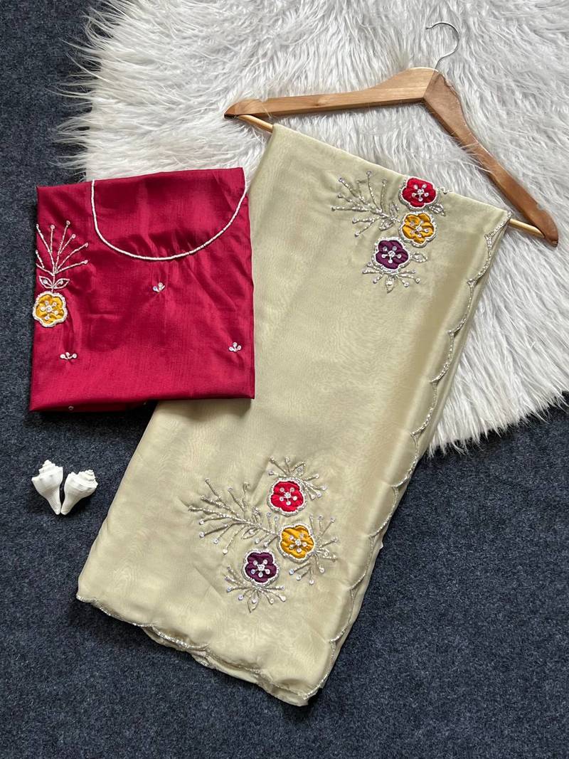 | Product Name | Cream Color Handwork Khatali Butta With Cutdana Sequence Work Silk Saree | |
