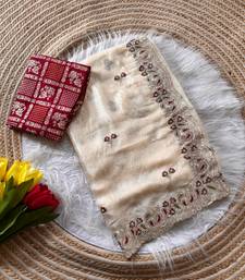 | Product Description | Soft Cream Shimmer Saree Featuring Graceful Embroidery And Detailed Border Work. Comes With A Stylish Red Woven Blouse Piece That Adds A Royal Touch. Simple, Elegant And Timeless |