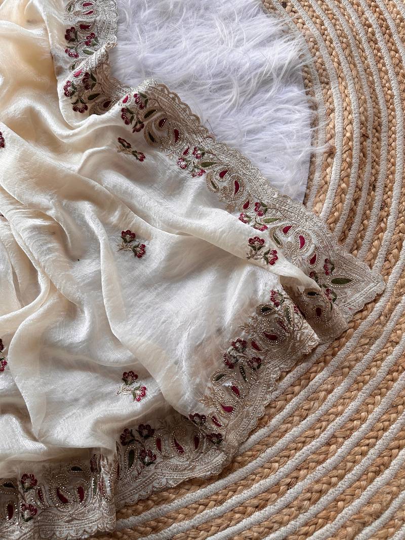 | Product Name | Creem Color Embroidery Work Shimmer Silk Saree | |