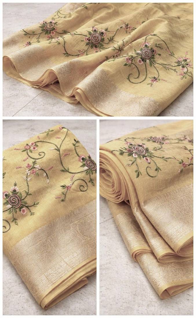 Golden color floral tissue saree