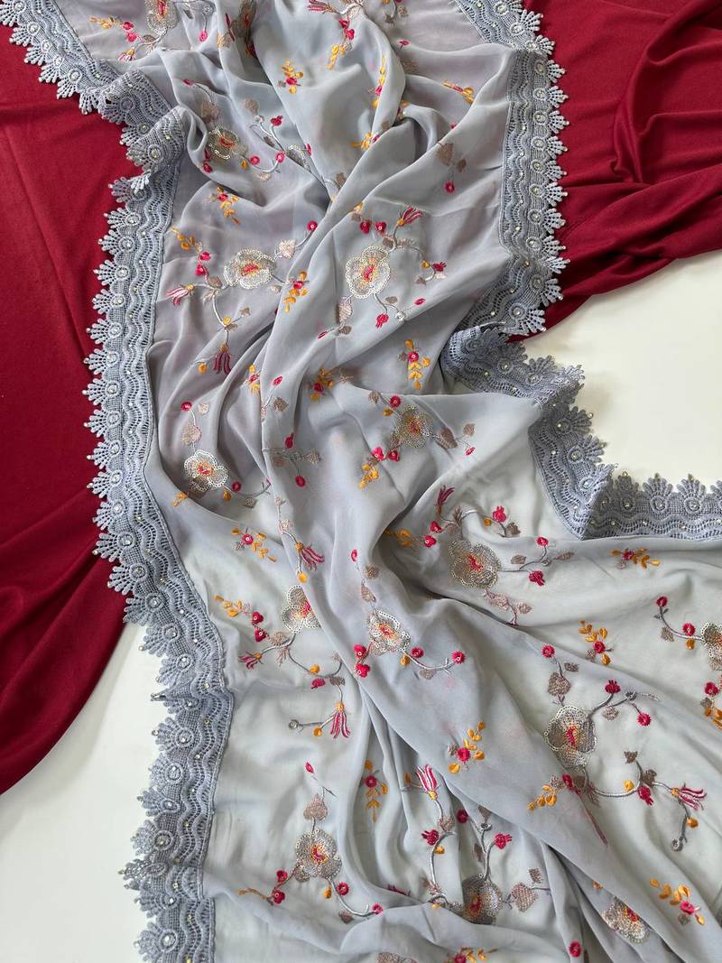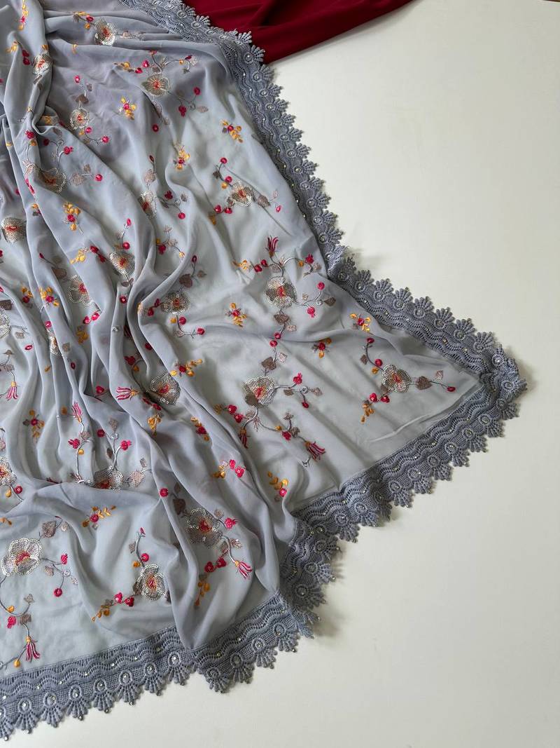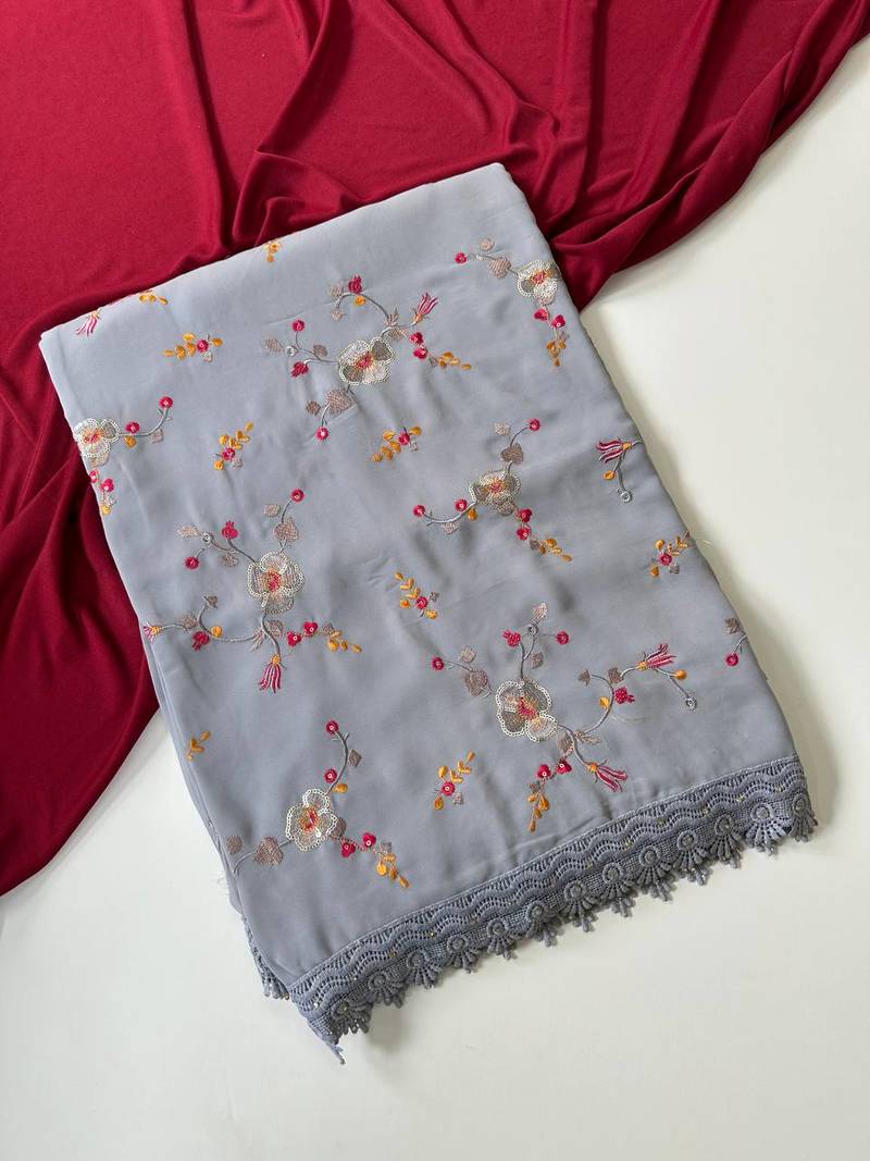 | Product Name | Grey Color Sequins Embroidered Jaal And Multi Thread Georgate Saree Cutwork Design | |