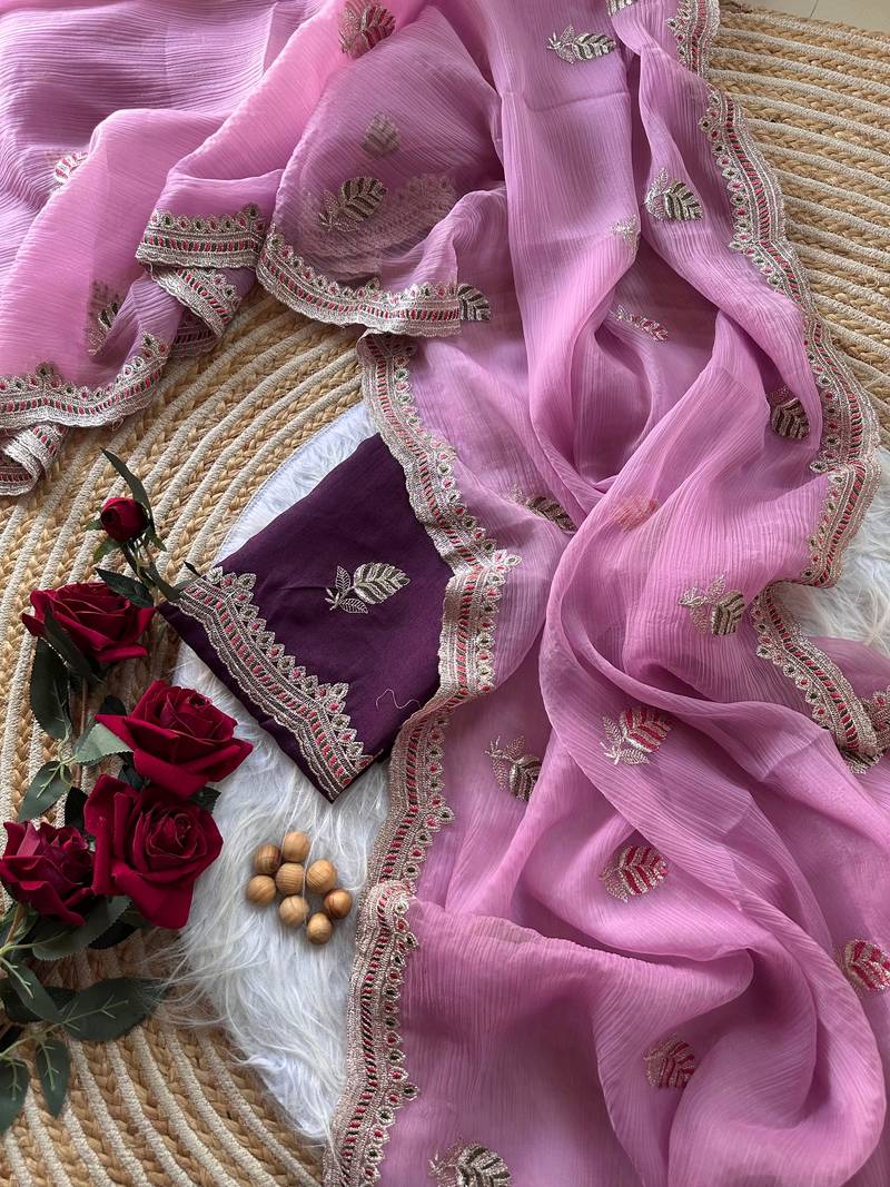 | Product Name | Pink Color Embroidery And Detailed Border Work Chiffon Saree | |